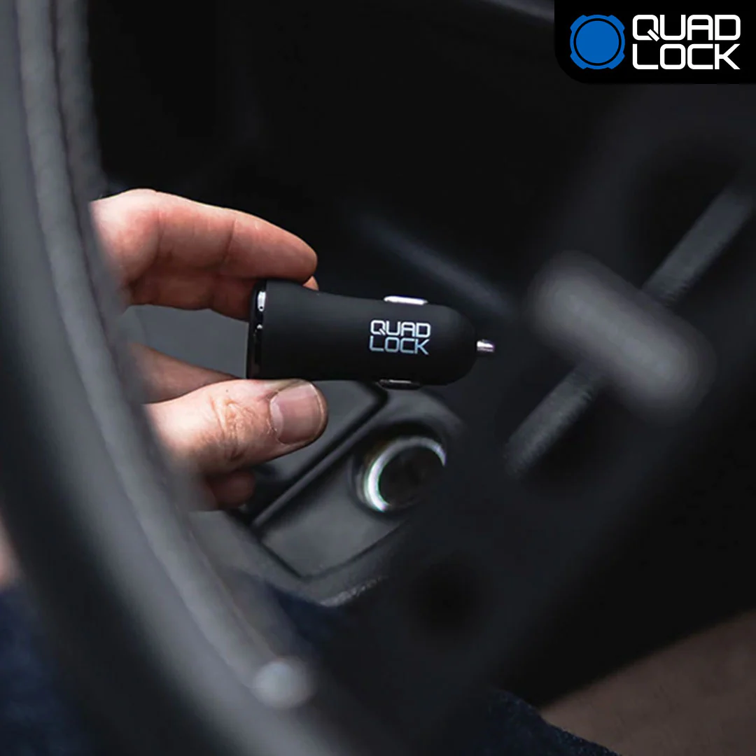 Easily charge your devices while on the road with the Quad Lock® 48W Dual USB 12V Car Charger.
